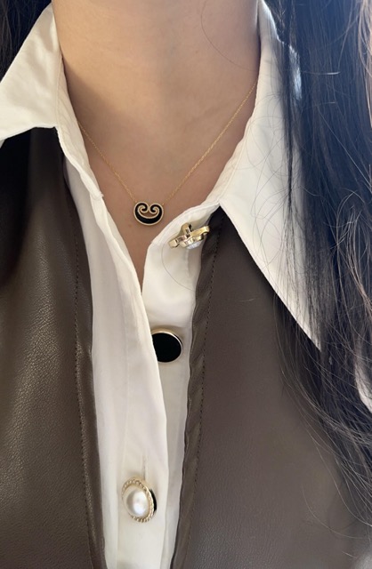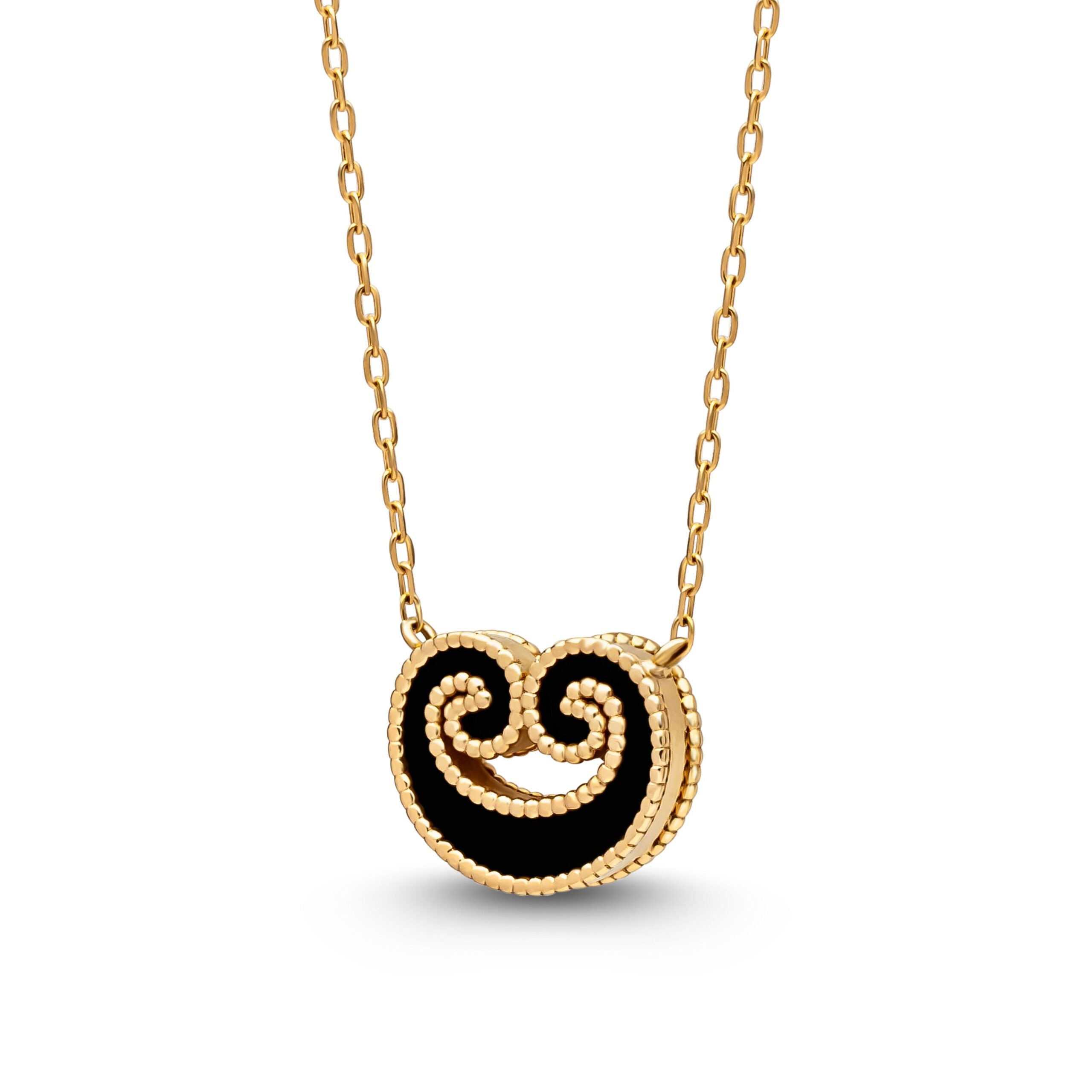 قلادة من مجموعة الأكانتس ، مزينة بالأحجار والذهب ومرصعة بحجر الأونكس الأسود ليضفي على القطعة لمسة من الفخامة التي تعكس الذوق الرفيع.