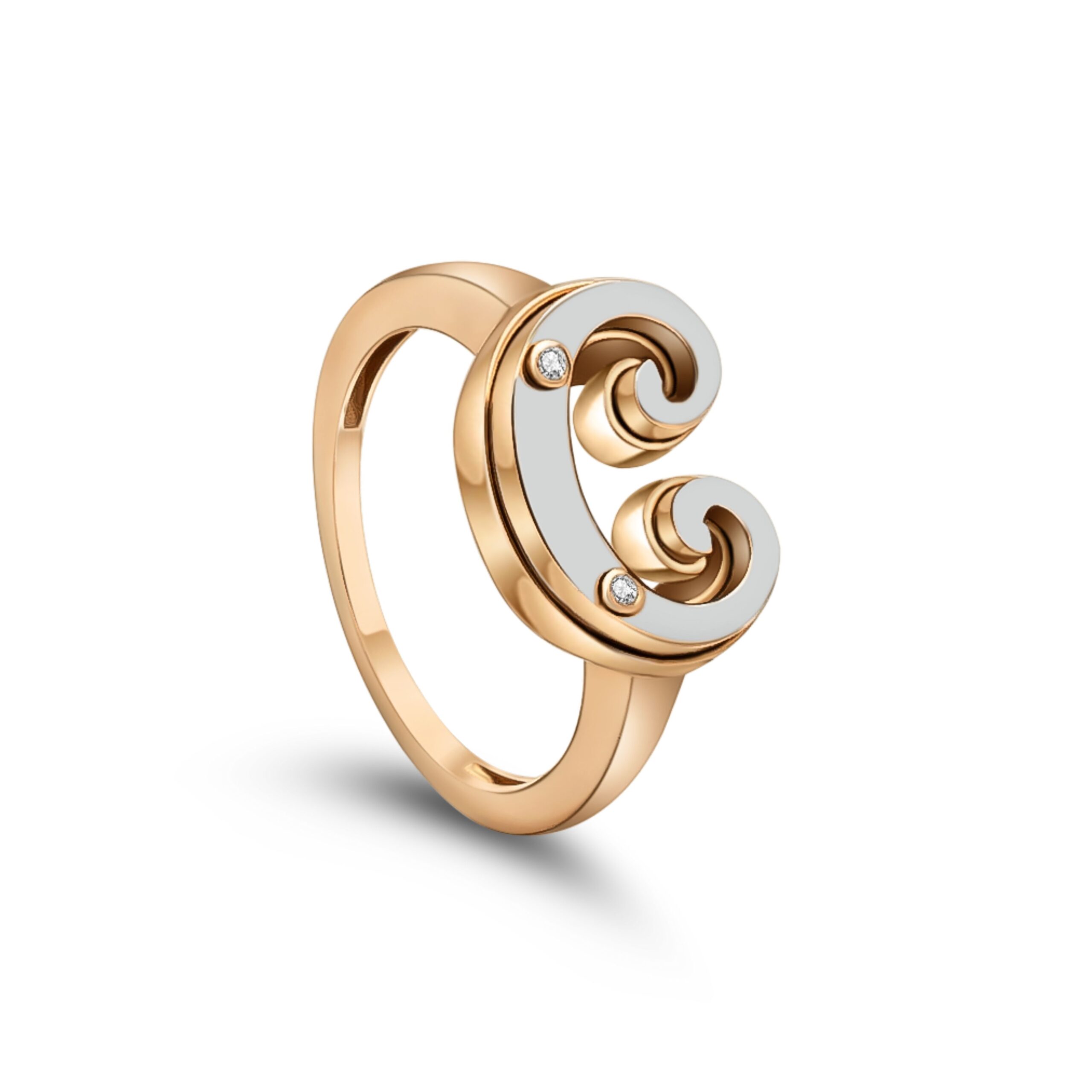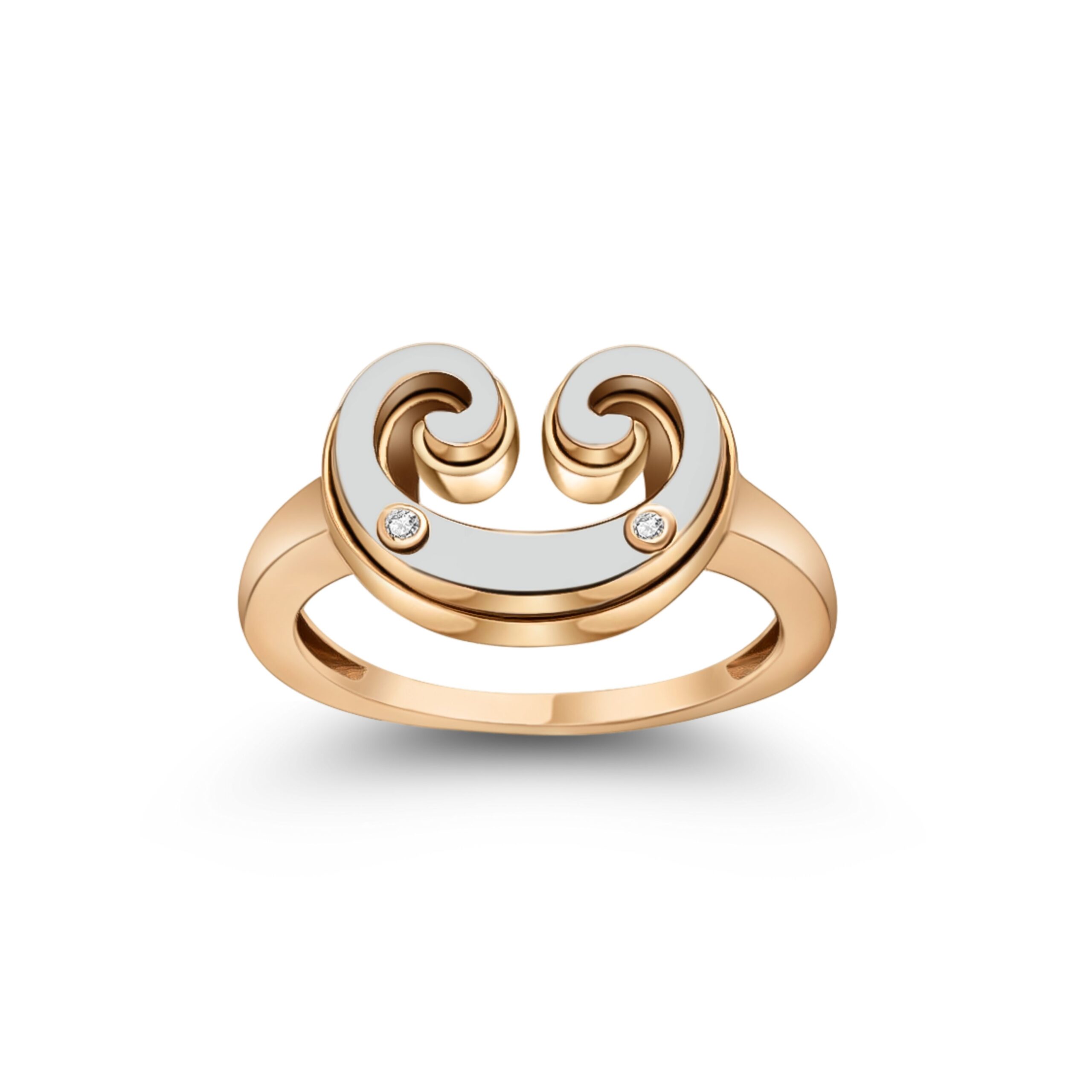 A ring from the Akants collection, yellow gold in the lower layer and white gold in the upper layer, set with two diamonds that reflect unparalleled beauty and luxury to add a touch of brilliance and distinction.