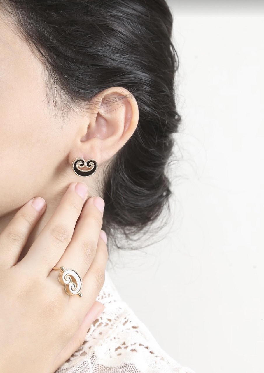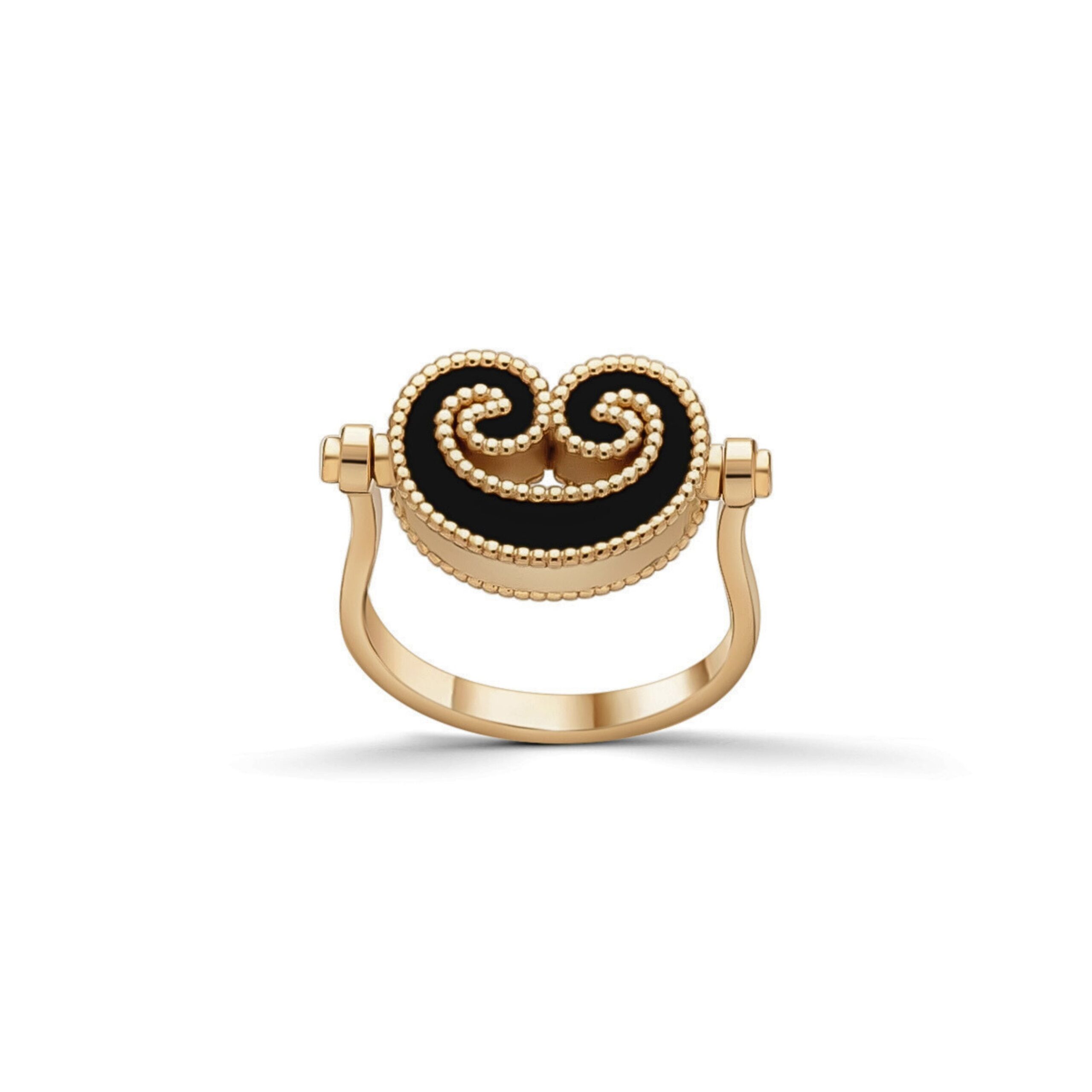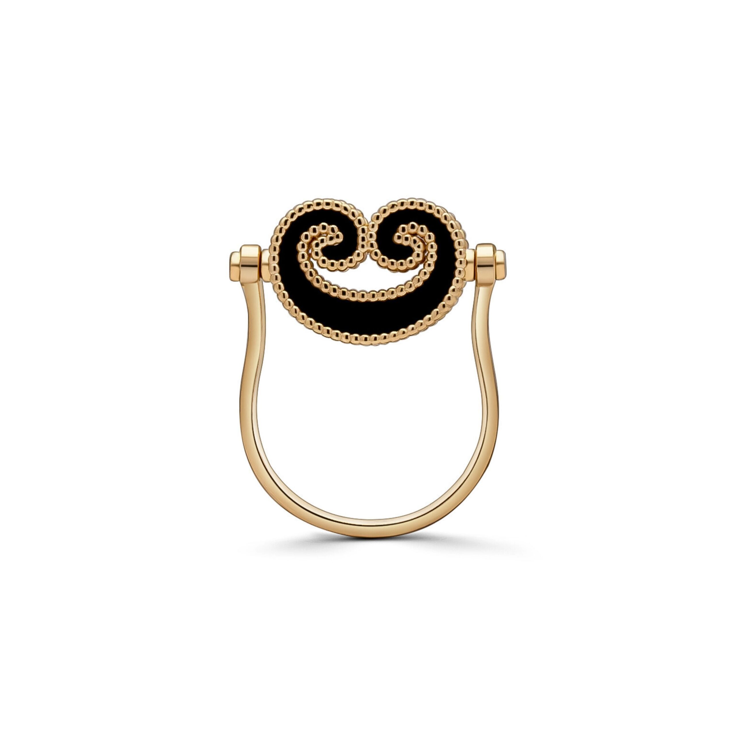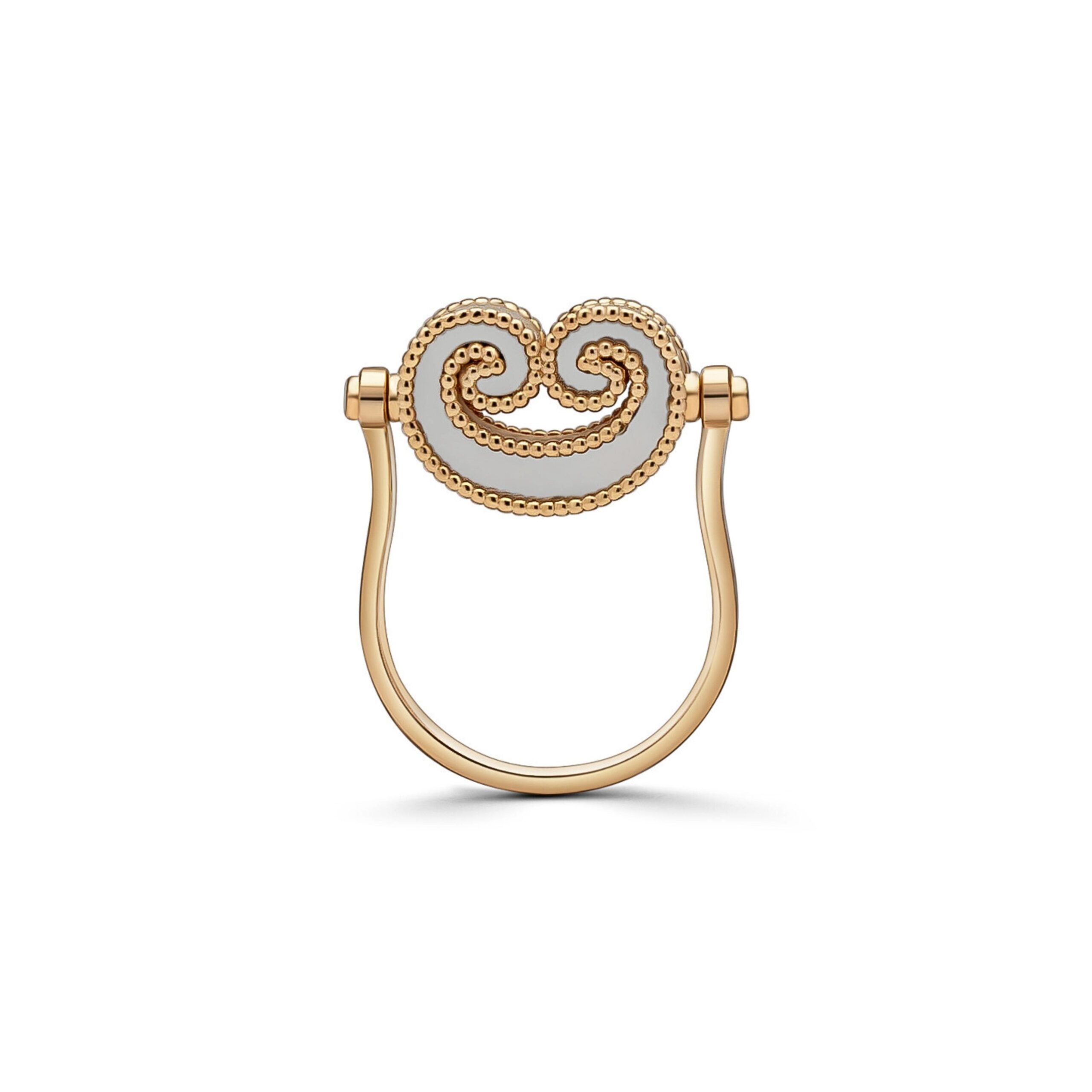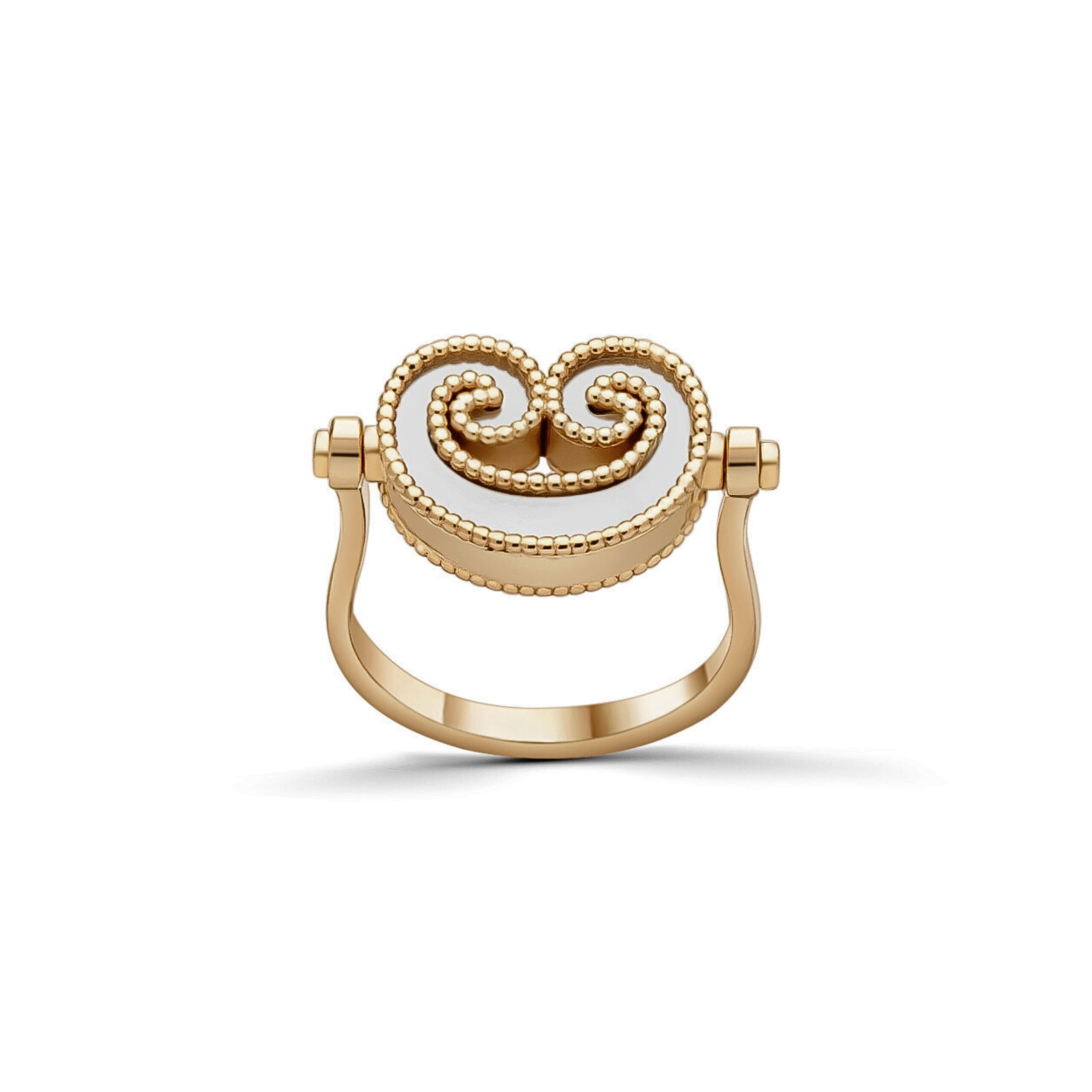 A modern expression of elegance, this reversible ring is set with mother-of-pearl and black alexandrite for a luxurious appeal.